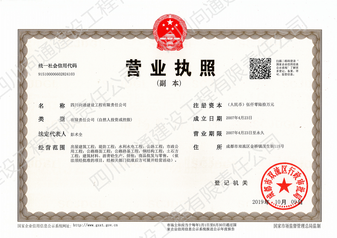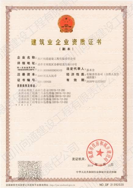 四川向通建設工程有限責任公司 四川向通建設工程有限責任公司成立于2007年,注冊資本金5060萬元,是一家專業(yè)從事瀝青混合料生產、專業(yè)分包以及市政道路、公路、路基工程專業(yè)施工建設的企業(yè)。公司注冊地址及生產廠區(qū)位于成都市雙流區(qū)金橋鎮茂生街115號,總占地面積約120畝;辦公地址位于雙流區(qū)海濱城海濱廣場7座11樓。公司生產廠區(qū)(雙流金橋)現有LB-5000型瀝青混合料拌合樓1套,每小時瀝青混合料生產量可達380噸。此外,根據項目需要,公司在多地建立4000型拌合站以服務施工(廣安齊福、達州、綿陽等),每小時瀝青混合料生產量為320噸。各種國內外道路施工機械:攤鋪機、壓路機、銑刨機、灑布車、封層車、吊車、拖車、等70余臺,可滿足各種道路施工需求。公司近100輛保溫運輸車輛均安設保溫板、加塞保溫棉、覆蓋棉絮和隔熱防水雨篷,有效減少瀝青混合料在運輸過程中的溫度流失進而保證瀝青路面的施工質量。 公司目前擁有眾多優(yōu)秀的技術人才,成熟的市場渠道,良好的企業(yè)聲譽。現有各專業(yè)施工人才共計79人;5支專業(yè)的施工班組可根據現場的具體情況制定實施性施工方案。今后公司將竭誠為各界客戶提供出色的產品和服務及具有競爭性的價格和具有創(chuàng)新精神的高效解決方案。 公司曾經榮獲:新津鄧雙段被新津縣政府評為“優(yōu)良工程”;雙流宗申大道被雙流縣政府評為“優(yōu)良工程”;成都后花園被成都市政府評為“重合同守信譽單位”;被三一重工評為“有遠見單位”。并在2018年1月被中國五冶集團評為“優(yōu)秀供方”;同年3月被四川交投評為2017年度“優(yōu)秀合作單位”的榮譽。榮譽的背后是我們公司所有員工堅持不懈的努力。 作為現代化的企業(yè),公司將以技術為切入點,以信譽為支撐點,以市場為著眼點,促進管理創(chuàng)新和技術創(chuàng)新。因此我公司能在短時間內迅速發(fā)展成為一家擁有各類中大型施工機械設備的公司。在今后的工作中我們將借用現代電子信息溝通的便利為公司的發(fā)展助力,同時將秉承發(fā)揚以往的團結拼搏精神,推動公司成為“快穩(wěn)型”發(fā)展的企業(yè)。 在未來的發(fā)展過程中,四川向通始終秉承“以質量求生存,以信譽求發(fā)展”的企業(yè)管理理念,以“啟后為先創(chuàng)佳績,爭做路建行業(yè)標”的企業(yè)宗旨與建設單位建立合作關系,創(chuàng)造更加輝煌燦爛的明天! 四 川 向 通 建 設